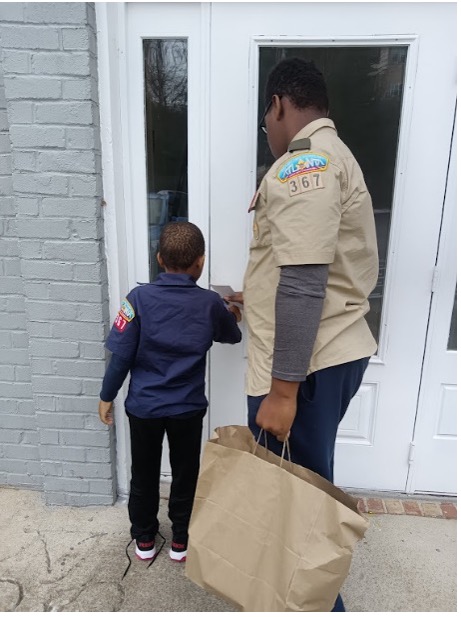 On December 21, 2022 Second Class Scout Mek’Kai, Tiger Cub Scout Triston, and Juliette Daisy Scout Malayah helped to deliver two weeks’ worth of meals to eight seniors. In addition to receiving meals, everyone also received a holiday card from the unit. It was a good experience for both the scouts and the seniors.